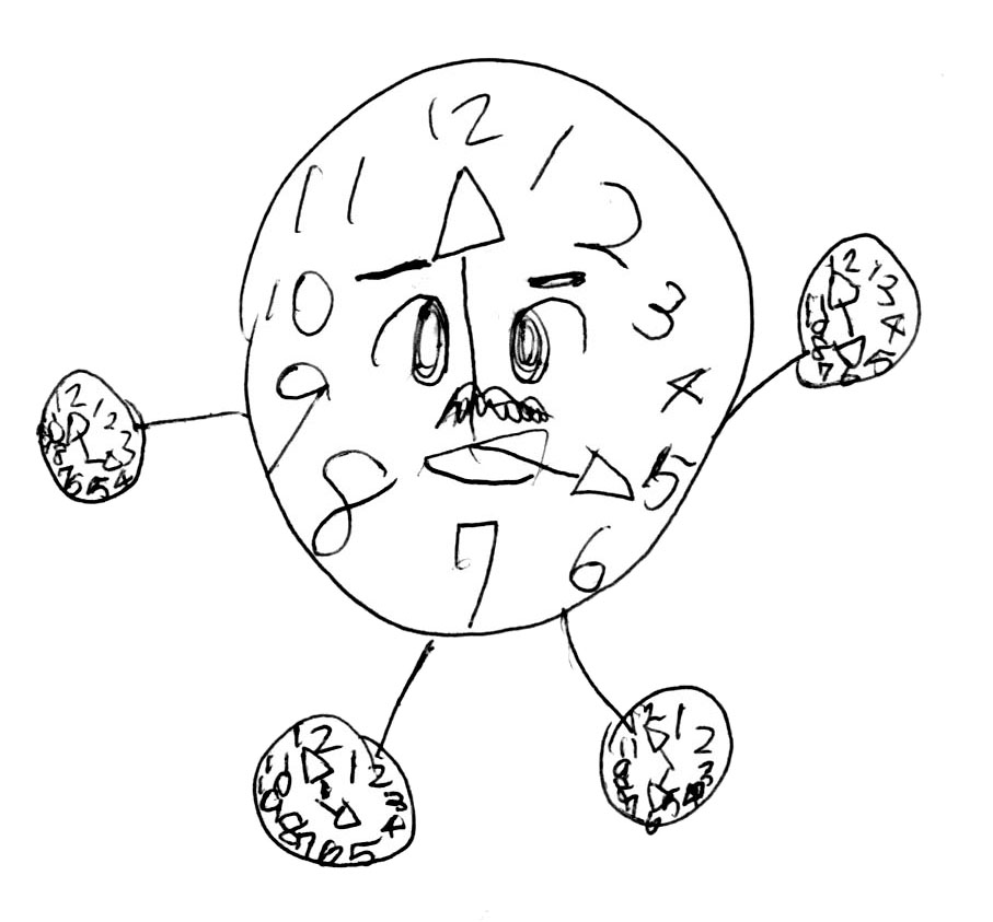 チカチカとけいの両手両足をよ〜く見ると、時間が違うという細かな設定!